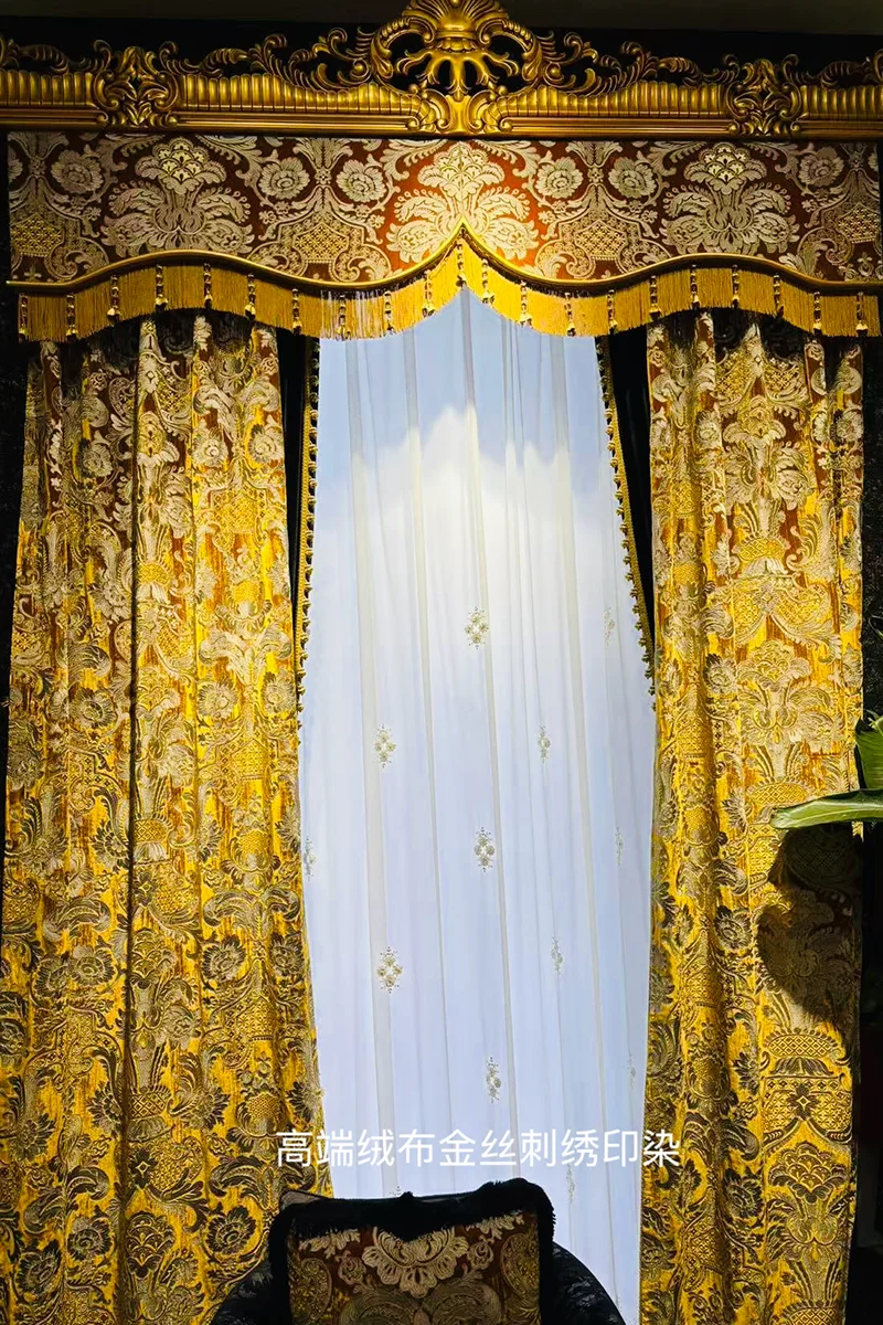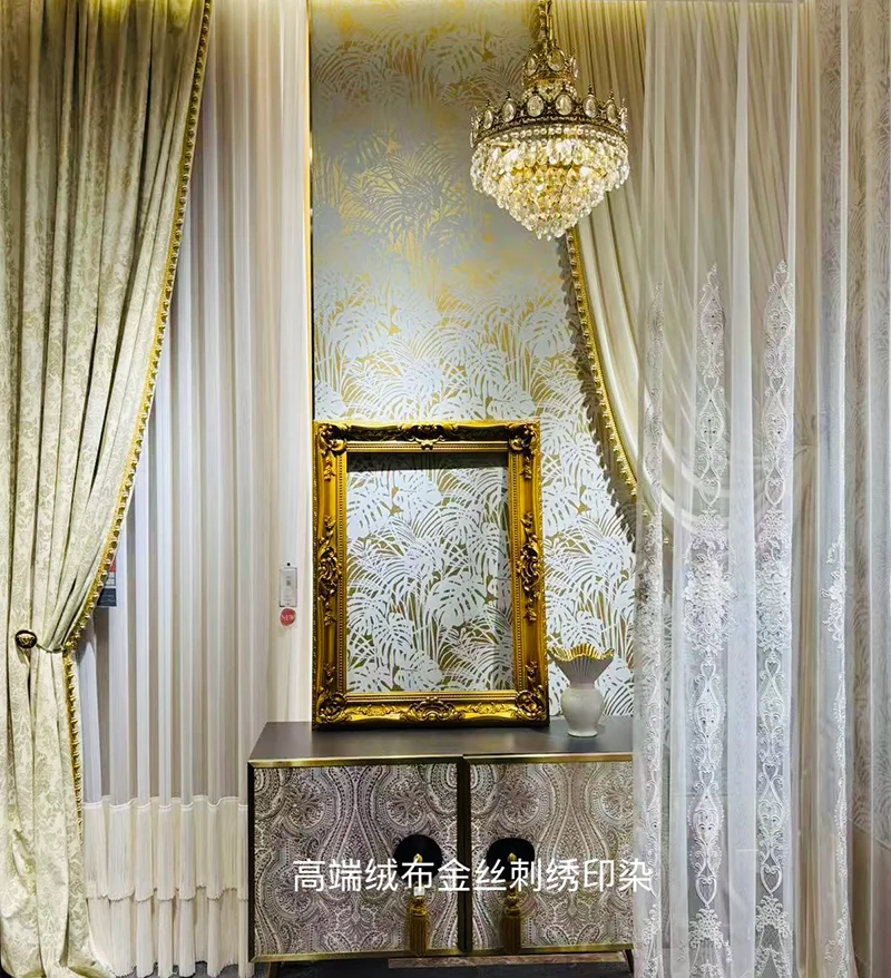 Luxury Velvet with Gold-Thread Embroidery & Dyeing Blackout curtains provide sound insulation and thermal insulation effects, suitable for bedrooms, living rooms, and office spaces such as lounges. Luxury Velvet with Gold-Thread Embroidery & Dyeing Luxury Velvet with Gold-Thread Embroidery & Dyeing First Prev 1 Next End